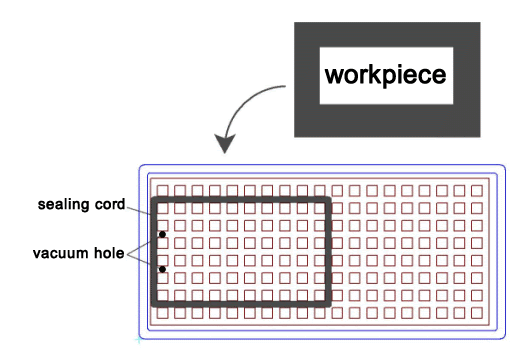 - Since the workpiece (equipment) pushes the moss rubber cord into the armature, its underside lies directly on the aluminum surface of the vacuum table, by what it creates utmost accuracy.