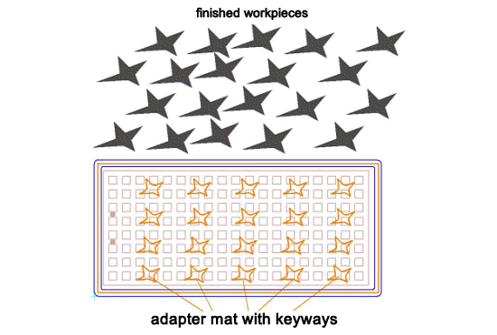 - The manufacturing of a adapter mat is just additional expense and effort, that really only amortizes itself in a series(batch) production. Nevertheless the adapter mat can quickly made with simple means, like for example a scalpel or drilling machine since its not necessary to exactly follow the course of the workpiece(equipment) contour.
